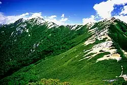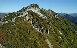 Mount Tsubakuro (燕岳, Tsubakuro-dake) is a 2,763-metre-high (9,065 ft) mountain in Azumino, Nagano Prefecture, Japan. It is situated in Japan's Hida Mountains in Nagano Prefecture. It was specified for Chūbu-Sangaku National Park on December 4, 1934.[3] Granite forms the unique body with white sands and sharp rocks exposed at the top. Kassen One (ridge) is a steep trail challenging to climbers ascending from Nakabusa Hot Springs.