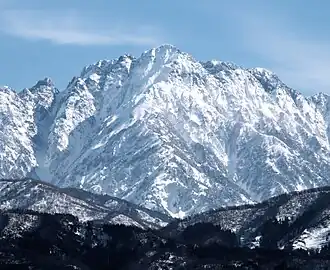 Mount Tsurugi (剱岳, Tsurugi-dake) is a mountain located in the eastern area of Toyama Prefecture, Japan. It is one of the tallest peaks in the Hida Mountains at 2,999 m (9,839 ft). It is one of the 100 Famous Japanese Mountains, and is called "the most dangerous mountain" climbable.[1]