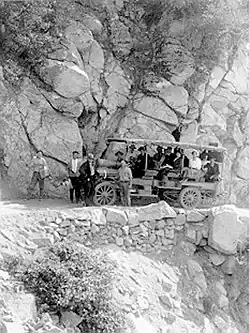 The Mount Wilson Toll Road (1891–1936) is a historic roadway which ascended Mount Wilson via a vehicular passable road from the base of the foothills in Altadena. It was accessible from Pasadena via Santa Anita Avenue (nowadays the north–south portion of Altadena Drive) which drove right to the front porch of the toll house. The road is still accessible to non-motorized traffic (hikers, bicyclists, and horses) by way of Eaton Canyon (either from the Nature Center entrance, or an access gate on Pinecrest Drive, just off Altadena Drive in Altadena). Segments of it have been closed at various times due to landslides. A 2005 landslide destroyed 50 yards of the road, but it has since been rebuilt and reopened.[1]