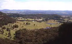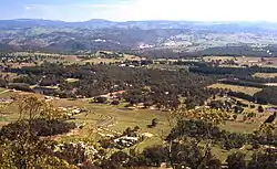 Mount York is mainly forested in Eucalypt growth, mostly open canopied. Several small creeks that flow into the Coxs River system run down its side. A twin promontory to its immediate east branching from the southern origin of Mount York promontory is also an extension of the western escarpment. Lockley Promontory and Mount York Promontory both jut northwest from the western escarpment, and begin at Mount Victoria, a small mountain village. Several bushwalking tracks are to be found here, including Berghofers Pass, Lockyers Road and Coxs Road.[3] The tracks branch off from Mount York and descend into the valley below, or in the case of Berghofers, in the direction of Little Hartley, west of Mount Victoria.[4] Atop the summit plateau near the lookouts are two wells used in early days, and remains of early settlement like walls are still visible on the tracks. Birdwatching is good here and many native species like the Yellow Cheeked Black Cockatoo and King Parrot reside here. Many termite mounds can be seen along the road. The mountain is about two to three hundred metres above the Hartley Valley.