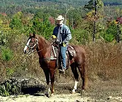 In Eastern Kentucky, the descendants of these horses were simply referred to as “saddle horses” or “mountain horses". They were expected to be able to work the fields or carry a rider comfortably, whichever was needed on a given day. While the rugged topography isolated Appalachia, it did not keep the mail from being delivered or the salesmen from making their rounds, relying on their “old-time mountain horses” for transportation. While formal history is limited, individuals whose families have bred these horses for several generations can often provide names and dates as far back as the early 19th century. With careful attention to the qualities that make an excellent saddle horse, mares were bred to the best stallion within the same branch. These stallions were often referred to by the family name: “Coffey’s Major”, “Cable’s Rex”, “Little’s Silver”, “Jasper Jones Bucky”. While few people kept formal breeding records, rarely did they forget where their horses came from.[9]