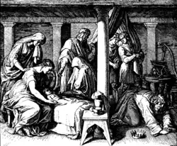 Special prayers are held on the third, seventh, and 30th days after death;[40] Prayers are held on the third day, because Jesus rose again after three days in the sepulchre (1 Corinthians 15:4).[41] Prayers are held on the seventh day, because Joseph mourned his father Jacob seven days (Genesis 50:10)[42] and in Book of Sirach is written that "seven days the dead are mourned" (Ecclesiasticus 22:13).[43] Prayers are held on the thirtieth day, because Aaron (Numbers 20:30)[44] and Moses (Deuteronomy 34:8)[45] were mourned thirty days.