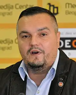On 28 December, the group centred around Mihailović announced that Gojković and his leading ally Mirko Čikiriz had been expelled from the party.[19][20][21] Gojković's allies rejected this.[22] Gojković's group also stated that Serbia's ministry of public administration and local self-government had issued a certificate on 27 December identifying Gojković as the only legitimate representative of the party.[23]