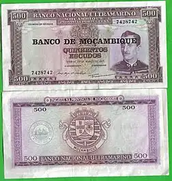 The escudo was the currency of Mozambique from 1914 until 1980. It was subdivided into 100 centavos.[1][2]
