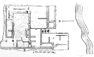 The confined space on which the city was built agrees with the description of Diodorus that the houses were lofty and of solid construction, with narrow streets (στενωποί) between them, which facilitated the desperate defence of the inhabitants.[10] Much of the walls, with those of two gateways, can be seen whose circuit is about 2.5 kilometres (1.6 mi).