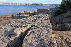 Only after the destruction of the city in 397/6 BC was a section of the nearby city wall dismantled and a small channel opened in the Kothon wall towards the sea. In the later Roman period (2nd to 4th c. AD) it was used for fish farming and the production of salt.[28]