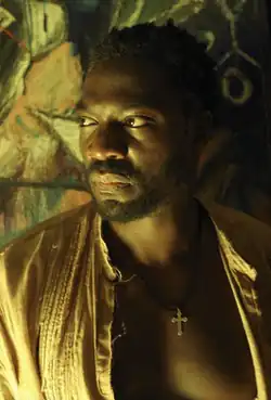 From Nigeria, Mr. Eko grew up always looking after his younger brother, Yemi (Adetokumboh M'Cormack), with whom he lived in a small village.[3] As revealed in "The 23rd Psalm", one day, when Eko is playing with the local children, a gang of guerrillas raids the village in search of young recruits.[3] When Yemi refuses to shoot an elderly man, Eko steps in and shoots him himself, sparing Yemi from the same fate.[3] Impressed by his actions, the guerrillas take Eko away with them and draw him away from his religious lifestyle and into the criminal life, where Eko adopted the title "Mr."[3] He grows up to be a fearless drug lord and a vicious leader of a guerrilla group, while his brother becomes an honoured priest.[4] Years after his abduction, Eko returns to his home village to ask Yemi to help him smuggle heroin, which Eko has hidden in a large number of Virgin Mary statues and intends to fly out of the country.[3] Yemi refuses until Eko threatens his associates will burn the church down if he does not sign documents that allow him and his henchmen to appear as priests.[3]