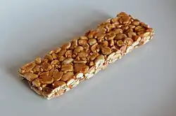 Mr. Tom is a candy bar containing roasted peanuts and caramel. Its wrapper has a yellow background and red text. It is manufactured by Hosta Meltis, a division of Swiss company Hosta International.[2]