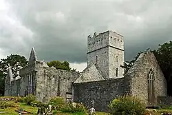 It has had a violent history and has been damaged and reconstructed many times. The friars were often subjected to raids by marauding groups and were persecuted by Cromwellian forces under Lord Ludlow.[2] Today the abbey is largely roofless, but is otherwise generally quite well-preserved with safe stairways providing access to the upper storey.[3] Its most striking feature is a central courtyard, which contains a large yew tree and is surrounded by a vaulted cloister.[4]