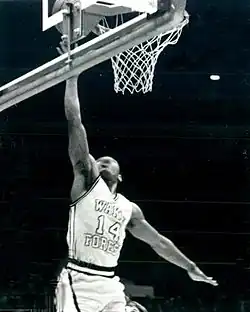 Bogues finished in the top seven in assists in six consecutive seasons (1989–1995), and in the top ten in steals in three of those seasons. He had 146 career NBA double-doubles.[1] After his NBA career, he served as head coach of the now-defunct Charlotte Sting of the WNBA. Bogues also had a surprising defensive ability. He blocked 39 shots throughout his NBA career, including one from 7-foot-tall Patrick Ewing.[2]