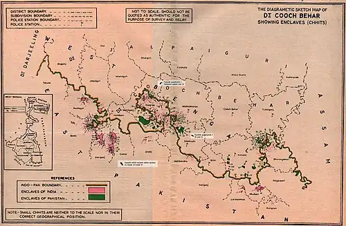- ^ Evgeny Vinokurov, "Theory of Enclaves" (2005) – Chapter 6: Enclave stories and case studies, page 117: Cooch Behar Archived 28 September 2007 at the Wayback Machine