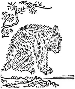 In Japanese folklore, like the kitsune (fox) and the tanuki (typically a Japanese raccoon dog), mujina (which could be raccoon dog or badger) are frequently depicted as yōkai that shapeshift and deceive humans. They are first seen in literature in the Nihon Shoki in the part about Empress Suiko's 35th year (627), where it states, "[I]n two months of spring, there are mujina in the country of Mutsu (春2月、陸奥国に狢有り), they turn into humans and sing songs (人となりて歌う)" demonstrating that, in that era, there was the general idea that mujina shapeshift and deceive humans.[7] In the Shimōsa region, they are called kabukiri-kozō (かぶきり小僧), and they would shapeshift into a kozō (little monk) wearing a strangely short kimono with a kappa-like bobbed head, and frequently appear on roads at night without many people and say, "Drink water, drink tea (水飲め、茶を飲め)."[8] The story in Lafcadio Hearn's kaidan collections called "Mujina"[9] about the witnessing of a faceless ghost (a noppera-bō) is also well-known.