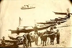 Mukilteo was the area's first trading post and served as the interim county seat of the newly created Snohomish County beginning January 14, 1861.[9][17] In the first county elections on July 8, 1861, the county seat was moved to Cadyville (now Snohomish) by a 17–10 vote. Mukilteo remained the county's only port and a major trading post for the Possession Sound region, and soon after received the county's first post office and telegraph station.[14] The town was relocated to another, more protected side of Point Elliott and supported the regional lumber industry, including regular shipments to Whidbey Island and a sawmill of its own.[18] By the 1880s, it had also gained a brewery, a gunpowder plant, and the Puget Sound region's first cannery.[9][14] Mukilteo was planned to become the largest port on Possession Sound, with a summer resort accessible by steamship, but the efforts ceased after the establishment of nearby Everett by East Coast industrialists.[14][19]