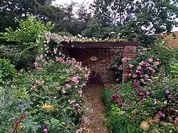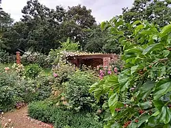 The Mulberry garden, originally Morušová zahrada in Czech, is a cottage garden in the Czech Republic, situated in the Czech Central Uplands in the village Režný Újezd, 7 kilometres (4.3 mi) northwest of the town Lovosice. The garden was established in 2014 by local gardeners admiring the English cottage garden style.[1] Apart from different kinds of plants such as perennial plants, English historical roses, Czech roses, annual plants, and bulbs, several uncommon fruit trees are grown, especially various mulberry varieties. Mulberry garden is located along the green tourist track to Boreč hill in the grounds of former Gentlemen's farm, house no. 2.