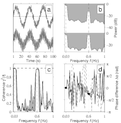 Here T denotes the matrix transposition. In neurophysiology for example, p refers to the total number of channels and hence can represent simultaneous measurement of electrical activity of those p channels. Let the sampling interval between observations be , so that the Nyquist frequency is .
