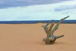 The central feature of Mungo National Park is Lake Mungo, the second largest of the ancient dry lakes. The Mungo National Park is noted for the archaeological remains discovered in the park[5] the remains of Mungo Man, the oldest human remains discovered in Australia, and Mungo Lady, the oldest known human to have been ritually cremated.[6] They were buried on the shore of Lake Mungo, beneath the 'Walls of China', a series of lunettes on the South eastern edge of the lake.