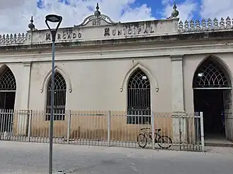 The Municipal Market of Feira de Santana (Portuguese: Mercado Municipal de Feira de Santana), also known as the Market of Popular Arts (Portuguese: Mercado de Arte Popular), is a public market in Feira de Santana, Bahia, Brazil. It was commissioned by the municipality of Feira de Santana in 1901 and inaugurated in 1915. It was designed by Acciolly Ferreira da Silva in an Eclecticism style with both Neoclassical and Gothic revival elements. It shares many design elements with the nearby Town Hall of Feira de Santana, also designed by Ferreira da Silva. The market covers 2,562 square metres (27,580 sq ft). The building was listed as a state heritage site by the Institute of Artistic and Cultural Heritage of Bahia in 1994.[1][2]