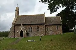 The name "Munsley" means 'Mul/Mundel's wood/clearing'.[8] Munsley was recorded in the Domesday Book as Moneslai/Muleslage/Muneslai.[9] On 25 March 1885 Mainstone Court were transferred to Munsley parish from Ashperton, the transferred area had 9 houses in 1891 and Bull's Grove and Hazle Farms was transferred from Putley on 25 March 1885, in 1891 the transferred area had 2 houses.[10] Local legend has it that William Shakespeare’s Hamlet is buried here.[11]