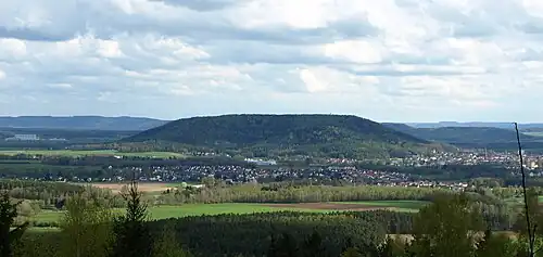 The Muppberg, not to be confused with the nearby district called Mupperg of the municipality of Föritztal, is a 515.7-meter-high (1,692 ft) mountain located in Bavaria between Neustadt bei Coburg, Sonneberg and Heubisch. On January 1, 1975, the 204-hectare (500-acre) forest district of Muppberg (Neustadter Forst), which is not part of the municipality, was incorporated into Neustadt from the Coburg domain.[1] On the summit stands the Arnoldhütte, a refuge named after Max Oscar Arnold, and next to it the Prinzregententurm.