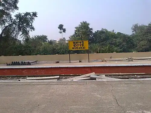Murarai Railway Station is located on the Sahibganj loop in Murarai, West Bengal. It serves the town of Murarai, which is part of the Murarai I community development block. The station has three platforms, and 26 trains stop there. It is classified as a NSG 5 (Non-Suburban Group) category station under Howrah Division.