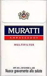 ![]() Pack of Muratti Ambassador cigarettes | |