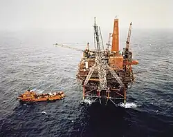 The Murchison oil field is located in the northern North Sea in the East Shetland Basin on the UK Continental Shelf. The field is situated 150 km north-east of Shetland and straddles the UK/Norwegian median line. It lies in UK Block 211/19 and extends into Norwegian Block 33/9.[1] The field is named after the Scottish geologist Sir Roderick Impey Murchison (1792–1871). Recoverable reserves were estimated to be 340 million barrels of oil out of a total oil-in-place of 790 million barrels. The field was developed through a large steel jacket platform standing in 156 m of water.[1] The peak production rate was 150,383 barrels of oil per day in December 1982.[1] Oil production was supported by gas and water injection. Production ceased in 2014 and the platform was removed in 2017.[2]
