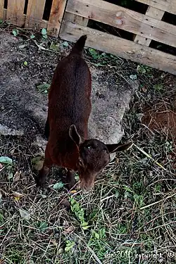 The Murciano-Granadina is a Spanish breed of dairy goat. It was created in 1975 when two existing breeds, the mahogany-coloured Murciana of Murcia and the black Granadina of Granada, began to be hybridised as a result of the official recognition of a single flock-book including both breeds.[2]: 396 [5] It is the most important dairy goat breed of Spain,[6] with more than 500,000 milking females.[7] It originated in the semi arid areas in south eastern Spain, including parts of Murcia, Almería, Granada and Alicante. They were bred for two main traits, milk production and its ability to continue this production in dry and nutrient poor regions. They have been introduced into several areas in Latin America as well as northern Africa.