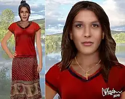 The body was clad in a red short-sleeved shirt. A peasant-style skirt was found lying on top of the victim's legs. No undergarments were found. Despite this, no conclusive evidence of sexual assault was found, but this was difficult to determine because of the degree of decay of the body. A golden cross necklace was found tangled in the victim's hair. Two earrings were found in her left ear.[11] Red nail polish was found on the right hand only and she had no known surgical scars, distinct birth marks or tattoos. Scars or marks on the head/face area would not be known due to the condition of the body. The front two teeth were slightly darker than the other teeth. The victim's appendix and tonsils were intact. Forensic anthropologists determined that the victim was not pregnant and had never given birth, and was most likely between the ages of 14 and 18 years old at the time of her death. Toxicology did not reveal any traces of drugs, but was not entirely conclusive because of the time elapsed between the death and discovery of the body. It is believed that the body was discovered after two to three days, or possibly even weeks, of exposure to the elements. This was especially difficult to determine because of the hot and humid weather in the area at the time.[12]