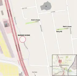 Awan, 22, ran a recruitment company and had previously attended the city's Deacon's School. He was an unofficial police informer and the court was told he thought of himself as a gangster and had a "fantasy for knives".[26][27][28] Nazir, 22, was close friends with Awan. He was married in Kashmir the month prior to the murder and had a son. He was educated at Bretton Woods School, had worked in a factory and later in a takeaway restaurant with Mahrad, whom he had known since childhood.[29] Ali, 25, had also attended Bretton Woods School and was also married, although his wife left him during the trial.[30][31] He was given a reference at the trial by the Conservative Deputy Mayor of Peterborough, Raja Akhtar,[6] and Labour Party councillor Mohammed Choudhary, with Akhtar stating he had "known him to be caring and responsible".[32] Mahrad, 21, owned a takeaway restaurant business in King's Lynn.[30]