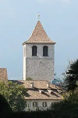 An Augustinian monastery was founded in the area of Bolzano in 1163.[1] When this convent fell victim to the floods of the Eisack river in 1406, the Habsburg Duke Leopold gave the Augustinian canons the 11th century castle of the Counts of Tyrol in today's district of Gries. A church was built in 1416. Remnants of the keep became the church's bell tower. Insurgent peasants pillaged the monastery in 1525.[2]