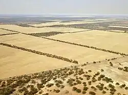 The Murray Mallee is a grain-growing and sheep-farming area in the east of the Australian state of South Australia. The name is not formally designated but is widely used to refer to an area of approximately 20,000 square kilometres (7700 square miles) bounded by the River Murray[note 1] on its northern and western sides, the Victorian border on its eastern side, and up to about 50 kilometres (30 miles) south of the Mallee Highway.