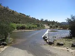 The word Murrumbidgee or Marrambidya means "big water" in the Wiradjuri language, one of the local Australian Aboriginal languages.[7][8][1][9] The river itself flows through several traditional Aboriginal Australian lands, home to various Aboriginal peoples. In the Australian Capital Territory, the river is bordered by a narrow strip of land on each side; these are managed as the Murrumbidgee River Corridor (MRC).[10] This land includes many nature reserves, eight recreation reserves, a European heritage conservation zone and rural leases.