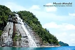 The island is known for a large waterfall on its western side.[2][3] A smaller islet on Mursala's eastern side, Pantai Pulau Putri, is known for its beaches. Mursala island is one of the only known habitats for Dipterocarpus cinereus, a species of plant considered to be extinct until the 2010s.[4][5]