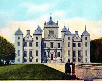 The house was commissioned by Sir John Archibald Drummond Stuart, 6th Baronet, who selected the eminent Edinburgh architect James Gillespie Graham for the task.[2] The huge size of the house was said to arise from a rivalry with John Campbell, 1st Marquess of Breadalbane, who had recently built the huge Taymouth Castle. The house was intended to replace the nearby Murthly Castle, which ironically not only continued to be used, but still exists.[3]