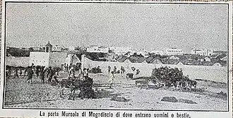 Their impact on the city was profound, as indicated by the symbolic gesture of dedicating one of the four original gateways of the ancient city in their honor.[29][26] Accounts of Mogadishu's gate by Italian colonial officer Giuseppe Stefanini in May 1913: