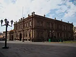The building is a former mansion, located alongside the Plaza del Carmen in the historic center of San Luis Potosí.[1] In the 1890s, Ramón Martí purchased five adjoining homes and demolished them to build his residence in Neo Classical style, designed by engineer Enrique Campos.[2][3][4]