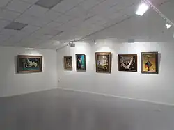 The museum has a permanent exhibition of paintings by Lodewijk Bruckman (1903–1995). Bruckman lived in Bellingwolde in a hotel opposite to the museum from 1987 to 1989.[18] He donated 21 paintings to the Bellingwedde municipality in 1988.[22] These paintings, which are now exhibited in the museum, are mostly still lifes in a style which is described as realistic, surrealistic, or magic realistic.[23]