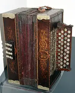 Diple is a traditional woodwind musical instrument in Croatian music. Sometimes called "Mih", "mjeh", "mjesina" or only "diple", it is played from Istria, Lika, over Dalmatia Islands and Coast to Herzegovina. "Mih" is made of tanned goat or sheep skin and consists of a "dulac" or "kanela" through which the air is blown and "diple" (chanter) on which it is played. Inside the "mih" on the chanter, two single-blade reeds are situated. Unlike bagpipes, "Mih" doesn't have a "trubanj" or "bordun" (drone). Although they are very similar, the "mih" from different parts of Croatia still differ in type of chanter, in the position of holes or in some tiny details (for example ornaments).