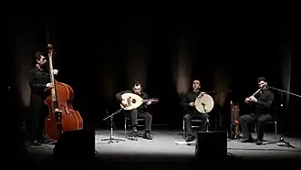 The classical music of Syria is part of the greater Arabic music world.[4] The main components are a maqam and an iqa (rhythm/metre). A maqam is a set of scales made of up of three or four notes.[4] A maqam will have two or three of these scales put together which is then played over the iqa (rhythm).[4] Both the maqam and iqa can be advanced or simple to play. Both the maqam and iqa are to be thought of as a structure that the musicians would then ornament with the playing.[4] Syria and the Middle East have a long history of conquest and conflict that have led to a diaspora, and modern diaspora has led to refugee camps. Music has become a means of consolation and preservation of culture in the refugee camps.[1][6]