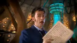 ![]() The Doctor showing his music sheets. | |||