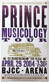 Musicology Live 2004ever was a concert tour by American recording artist Prince to promote his Musicology album. The tour began on March 27, 2004 in Reno, Nevada and concluded on September 11 in San Jose, California. It was a commercial success earning $87.4 million from 77 shows in 52 cities across the United States and selling more than 1.4 million tickets.[1][2] Prince said one of the goals of the tour was "to bring back music and live musicianship."[3]