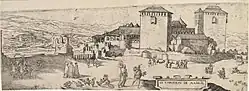 The construction of these Walls is directly linked to the origin of Madrid. They were ordered to be built by the Córdoban emir Muhammad I (852 - 886) on an unspecified date between the years 860 and 880, according to a text of al-Himyari.[6] It was in an area not chosen by chance. It was a wide cultivated valley, with easy access to water reserves.[7] It defended the almudaina or Muslim citadel of Mayrit (first name of the city), located on the site currently occupied by the Royal Palace.