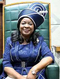 Mutinta Hichilema (born 7 May 1967) is the first lady of Zambia, having assumed the role after her husband, Hakainde Hichilema,[2] was elected as president of Zambia in August 2021.[3] She is committed to humanitarian causes and her active involvement in community development programs across Zambia.[4][5]