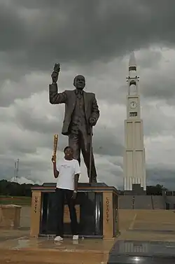 ![]() Mwai Kumwenda in front of a statue of Hastings Banda, the former Prime Minister and President of Malawi on 22 January 2010 | ||||||||||||||