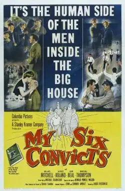 My Six Convicts is a 1952 American film noir crime drama directed by Hugo Fregonese. The screenplay was adapted by Michael Blankfort from the autobiographical book My Six Convicts: A Psychologist's Three Years in Fort Leavenworth, written by Donald Powell Wilson.