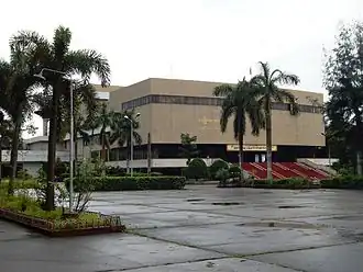 In its early years, the orchestra struggled to find its footing, only training intermittently under the direction of an American musician. It was not until 2004 that the orchestra held its first and invitation-only concert at MRTV's Studio A in Yangon.[1] But the progress was short-lived. In October 2004, its chief patron Khin Nyunt was purged and placed under house arrest. Viewed as a pet project of Khin Nyunt, the orchestra became a taboo, and was banned from holding any high-profile public activities. At one point, government officials went so far as to deny the existence of a national orchestra.[2] The American instructor left shortly after, and the orchestra stopped practicing classical music. For the next several years, it was relegated to performing popular songs or folk music on state television.[2] The only reprieve was in 2007 when the orchestra was allowed to give its first public concert after a successful plea to the government by a group of musicians from Europe. After a period of intensive training, the orchestra finally held its first public concert at the National Theatre in Yangon on 1 April 2007, playing the music of Haydn.[1][3] A group of musicians from the Cambridge University also participated.[3] But the concert was a one-time deal, and "the situation turned cold again".[1]