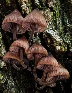 Mycena kuurkacea is a species of mushroom in the family Mycenaceae. It was first described in 2003 by Australian mycologist Cheryl A. Grgurinovic based on specimens found in New South Wales, Australia. Fruit bodies were found growing on leaf litter under Eucalyptus or on logs of Eucalyptus or Bedfordia salicina.[1]