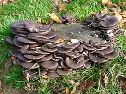 The second principle is to promote saprotrophic fungi in the environment.[2] Saprophytic fungi are crucial to mycoforestry systems because these are the primary composers breaking down wood and returning nutrients to the soil for use by the rest of the forest ecosystem. This can be accomplished through inoculation of wood debris at site. Spored oils (biodegradable oils containing fungal spores) can be used in chainsaws when problematic or invasive hardwood requires felling. This method is a simple means to inoculate a tree. Additionally plug spawn can be implemented and injected into wood mass again prompting colonization by the selected fungus. Eventually repeated colonization efforts should not be necessary as many fungal life forms are strong and will spread and sustain in the soil on their own.[5]