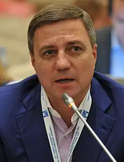 Mykola Dmytrovych Katerynchuk (Ukrainian: Микола Дмитрович Катеринчук; born 19 November 1967) is a Ukrainian politician and lawyer who served as a People's Deputy of Ukraine from 2002 to 2014. The chairman of the European Party of Ukraine.