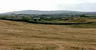 Mynydd Eilian, after the Mynydd Bodafon, is the second-highest hill of the Isle of Anglesey.[6][7] The hill is located close to the NE extremity of Anglesey, and overlooks Llaneilian and the Point Lynas (Welsh: Trwyn Eilian).[8] Because of its topographic prominence is classified as a HuMP.[9] With the Parys Mountain is a visual landmark of the nearby area.[4] South of the Mynydd Eilian stands a lower hill named "Mynydd Nebo", where is located a couple of telecomunication masts.[10]